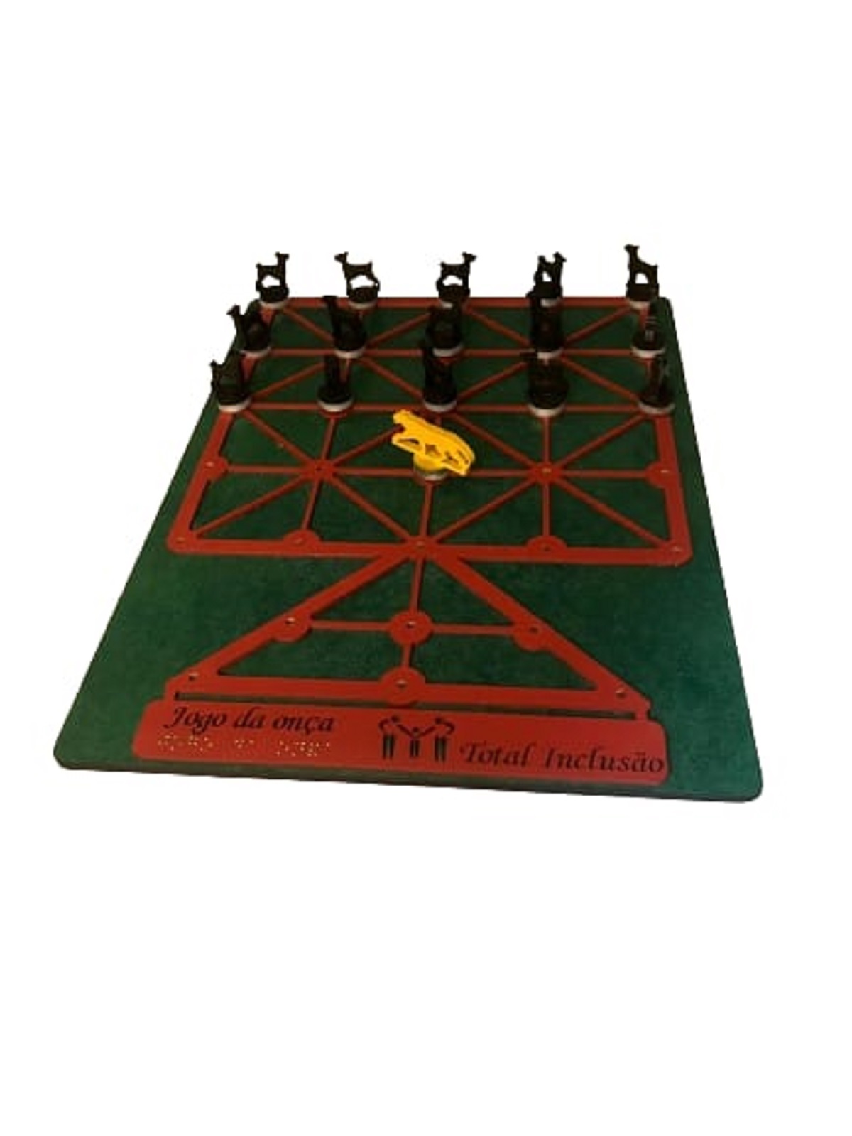 No Jogo da Onça, um jogador assume o papel da onça enquanto o outro controla os cachorros. O objetivo da onça é capturar os cachorros, enquanto os cachorros devem cercar a onça para restringir seus movimentos. Este jogo promove o desenvolvimento de habilidades estratégicas e oferece uma experiência divertida e inclusiva, permitindo que todos, incluindo pessoas com deficiência visual, possam participar e se divertir.